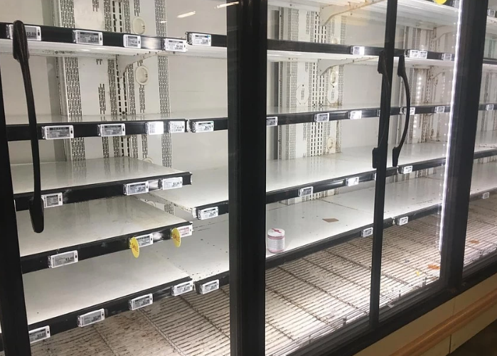 В стране из-за коронавируса уже опустели полки магазинов — люди в панике сметают все.