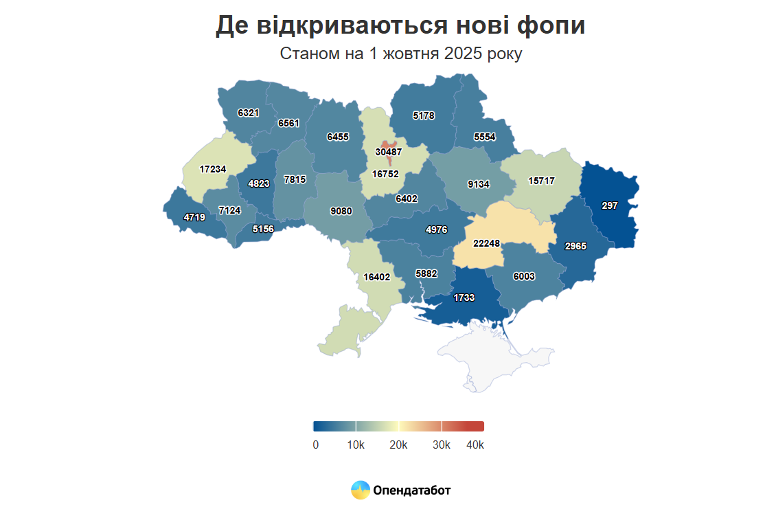 За 9 месяцев 2025 года в Украине зарегистрировано 225 046 новых ФЛП, 213 293 прекратили деятельность. После провального января рынок стабилизировался, а в сентябре зафиксировано рекордное 29,6 тыс. новых предпринимателей. В целом ФОПономика вышла "в плюс" в III квартале.