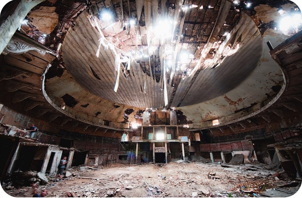 Здание построено в 1911 году как помещение цирка. Автор проекта – архитектор Борис Корниенко. В то время сооружение было самым большим цирком в мире и вмещало почти 6000 зрителей. В 1912 году в здание переоборудовали под оперный театр, который стал называться «Муссури» — по имени театрального предпринимателя Герасима Михайловича Муссури, который приобрел здание. Говорят он был проклят партнерами, которых бросил. Умер сам, а в здании неоднократно были пожары – каждый раз, когда власти говорили о его восстановлении. Поэтому здание до сих пор заброшено, говорят там живой повод оперы.