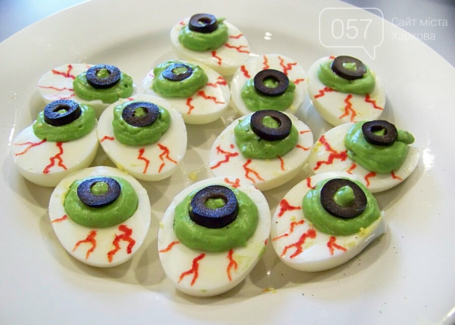 Сделайте "жуткие" меню: пирожные в виде глаз, желе "кровь", тыквенный пирог или напитки яркого цвета. Для детей подойдут сладости и фрукты в тематическом оформлении.