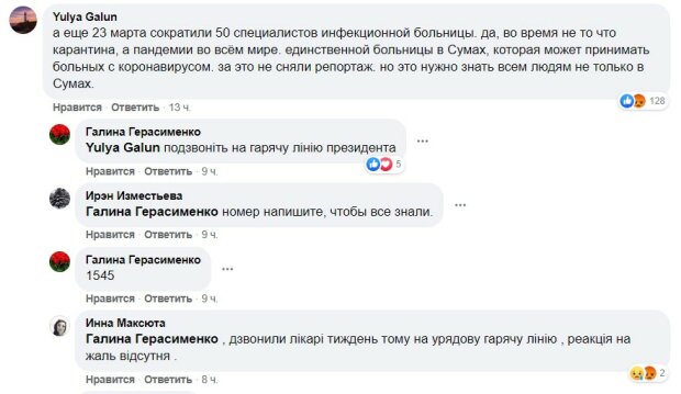 В комментариях под этим видео пользователи пишут, что 23 марта также сократили 50 специалистов инфекционной больницы, которая единственная в Сумах может принимать больных с коронавирусом. Аналогичная ситуация и в Кривом Роге.