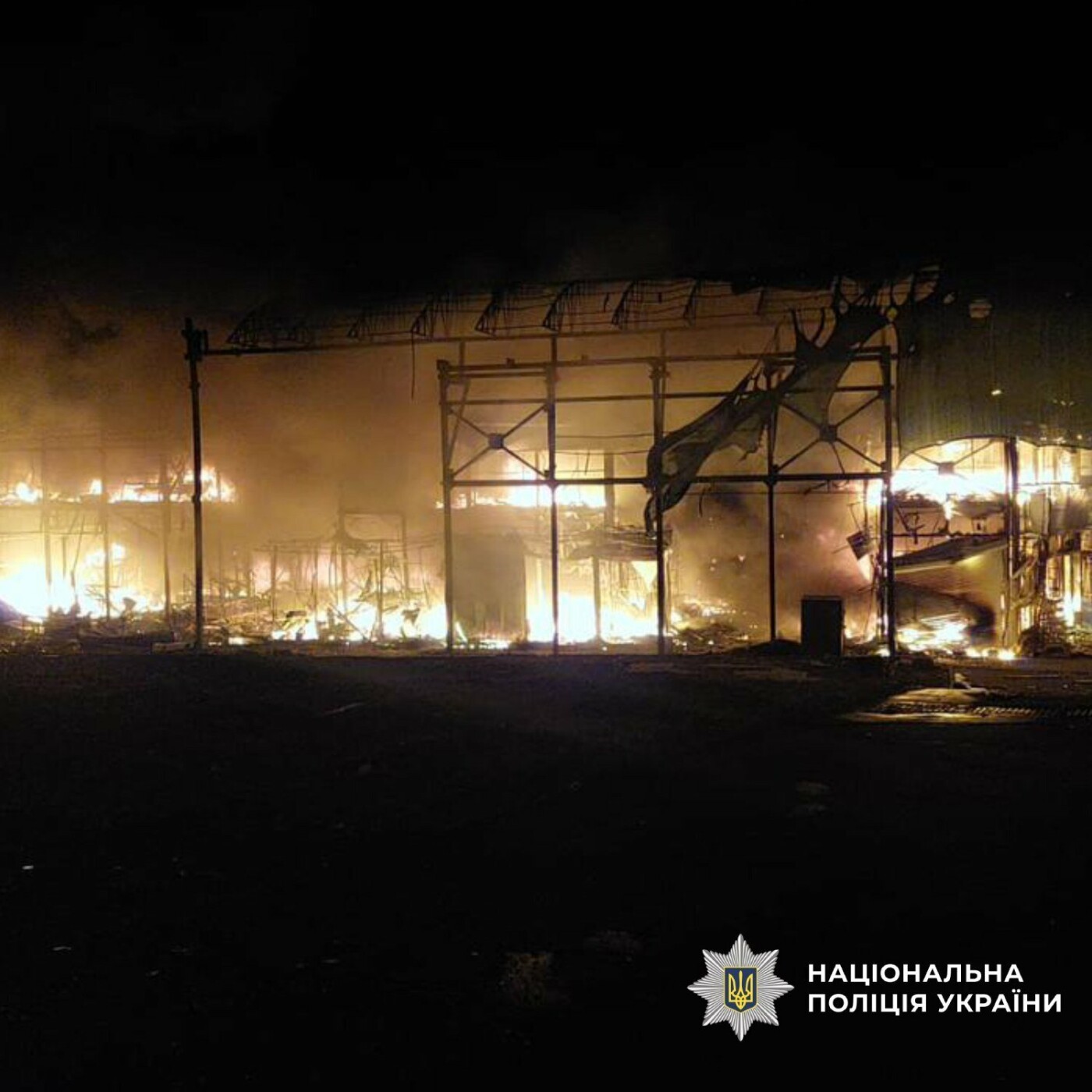 - В Киевском районе произошел масштабный пожар на рынке – горели торговые павильоны на площади 2800 кв. м.