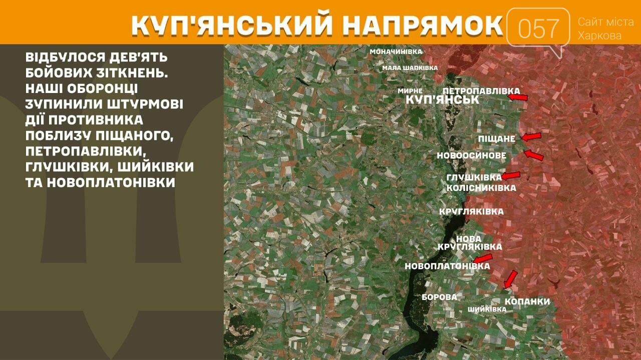 На Купянском направлении вчера произошло девять боевых столкновений. Наши защитники остановили штурмовые действия противника вблизи Песчаного, Петропавловки, Глушковки, Шейковки и Новоплатоновки.