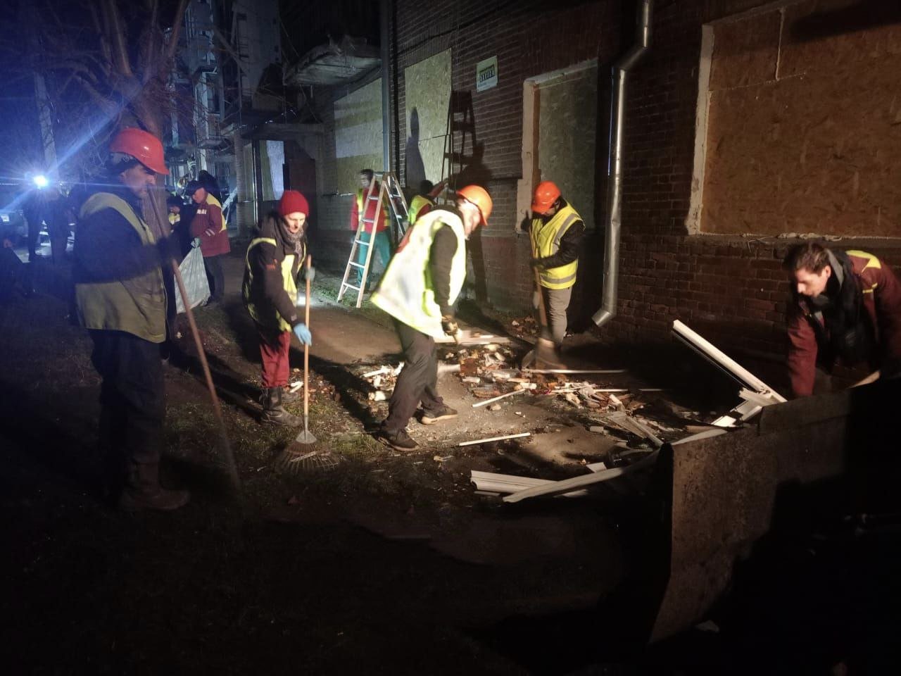 В частности, специалисты КП «Харьковское ремонтно-строительное предприятие» и КП «Харьковжилстрой» закрывают выбитые окна.