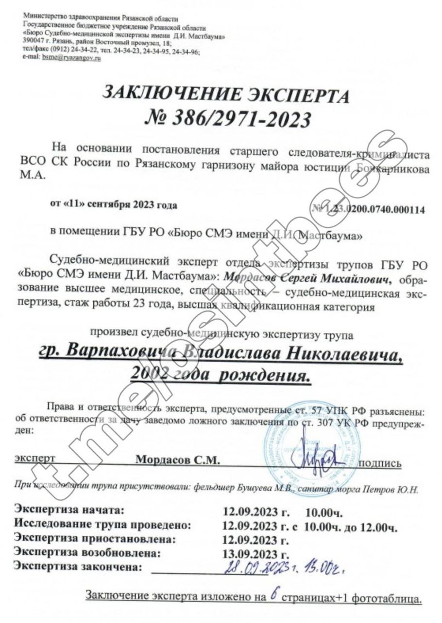 Молодший син, Варпахович Владислав Николаевич 30.08.2002, вже мертвий. У вересні цього року під час проходження військової служби по призову в в/ч 41521 в м. Рязань він був вбитий пострілом в голову із автомата. З задоволенням публікуємо його посмертні фото, а також декілька скріншотіві з офіційних документів.