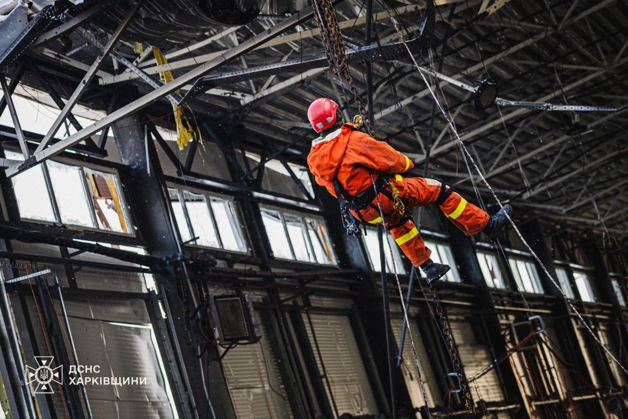 Спасатели ГСЧС продолжают ликвидировать последствия вражеского комбинированного удара по почтовому терминалу в Харьковской области.