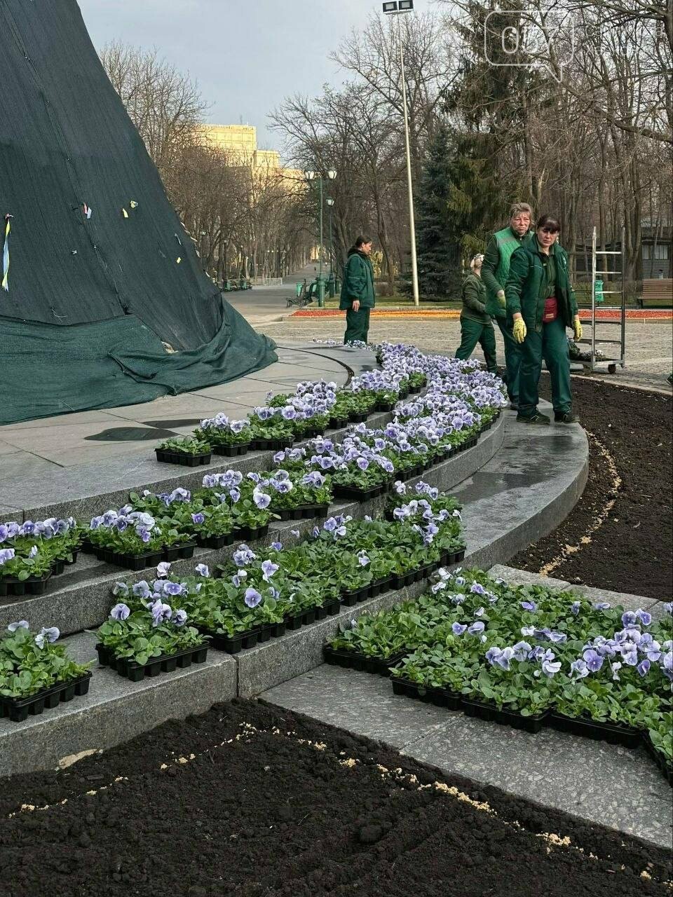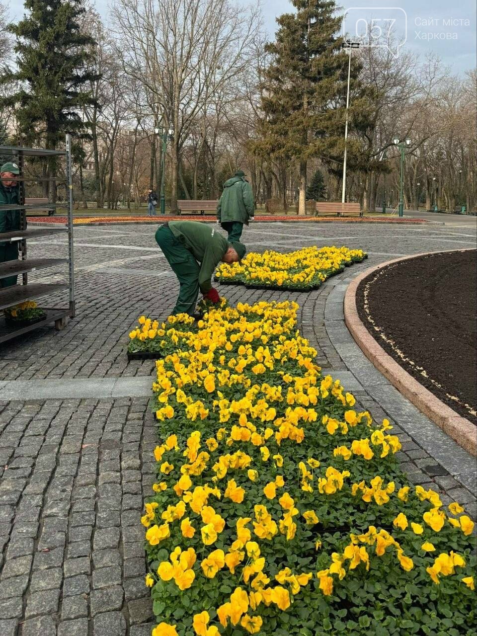 В центре Харькова, в саду Шевченко коммунальщики начали высаживать цветы.