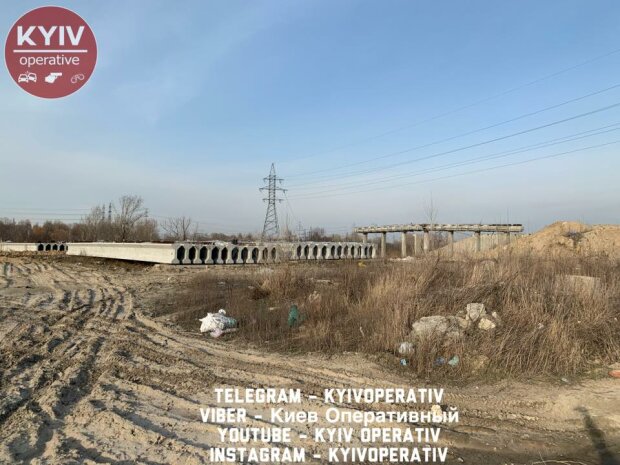 Месяц назад на месте шли работы по расширению дорожного полотна и его усиления. Строители расширили проезжую часть основной трассы под заезды и съезды с моста. Сюда завезли тонны песка и щебня. Отметим, что участок будущей дороги от ул. Богатырской в направлении Оболонского проспекта и проспекта Героев Сталинграда ныне полностью погряз в мусоре. Киевляне на этом месте образовали большую несанкционированную свалку.