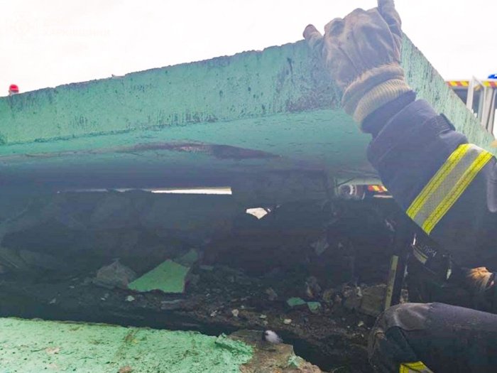 Спасатели получили об этом сообщение 12 мая в 13.42. В результате аварии погибла 40-летняя женщина, тело которой оказалось зажатым железобетонной плитой.