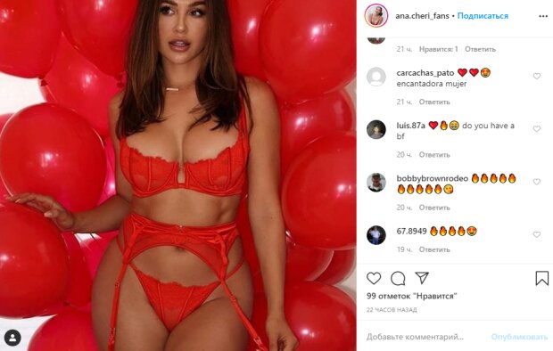 Американская фитнес-модель Ана Чери показала горячий вид в красном белье