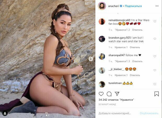 «Ой так мило 💕💕💕», «Люблю это!!! 🔥🔥🔥🔥🔥🔥», «На самом деле я не фанат, но ты мне нравишься», «Это лучший образ за весь месяц», «Ясс Квин🍑», «Принцесса Лея супер горячая», «Злой крутой взгляд 😊😊😊😊».