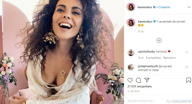 Уточним, что на снимке Каменских позирует в платье с вырезом, элегантно нагнувшись и показа всем роскошную фигуру. Это стало причиной бурных комментариев со стороны ее поклонников.