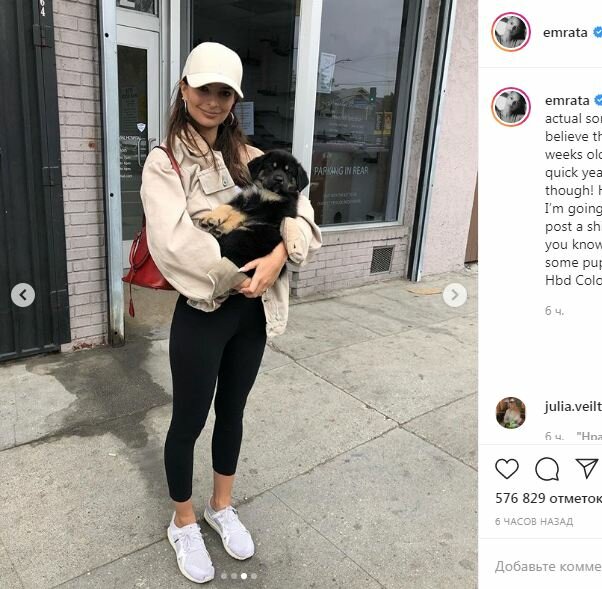 Ранее звезда порадовала поклонников фото со своим любимым псом Коломбо. На снимках артистка позирует с щенком. Малыш устроился у нее на руках.