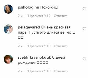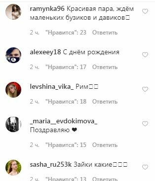 "ЛУЧШЕ БЫ СО МНОЙ БЫЛА, Я ВОТ БОГАЧЕ ДАВЫ РАЗ В 20, МОГУ ЯХТУ ПОДАРИТЬ ТЕБЕ. ОЛЯСИК ГО СО МНОЙ ❤️😂", "Господи я дожила до этого дня", "Вы классные! Вы очень друг другу подходите! Берегите любовь от лишних глаз! Пусть она будет долгой!", "Боже!!!!! Какие красивые 😍😍😍😍", "Ждем деток, красавчики❤️❤️❤️", "У меня у мужа тоже др сегодня 😍", "😍🥰🥰🥰Пупсики сладкие.. Удачи вам во всём", "Красивая пара, ждём маленьких бузиков и давиков", "С днём рождения", "Рим😍🥰", "Поздравляю ❤️", "Зайки какие😻", "Похожи🥰", "С днём рождения🎉🎉🎉😁", "Какие красивые 😍 Будьте счастливые", "Пипец Оль😍", "Шикарны", "Какая прелесть 🥰", "Любовь 💓", — написали пользователи сети.