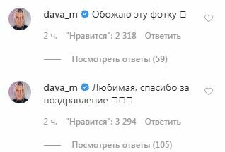 За час пост собрал более 600 тысяч лайков и много комментариев. Даже жених не устоял и написал: "Обожаю эту фотку", "Любимая, спасибо за поздравление 🙏🏻❤️".