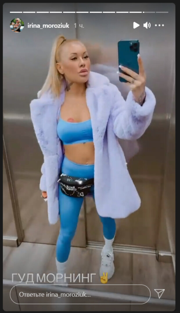 Как пишет Рoliteka.net, у себя в Инстаграм красотка опубликовала видео из лифта, на котором позировала в весьма соблазнительном виде. Красотка была одета в миниатюрный топик и обтягивающие лосины. Спортивный костюм выгодно подчеркнул формы Ирины. Сверху красотка набросила шубку, чтобы не замерзнуть.