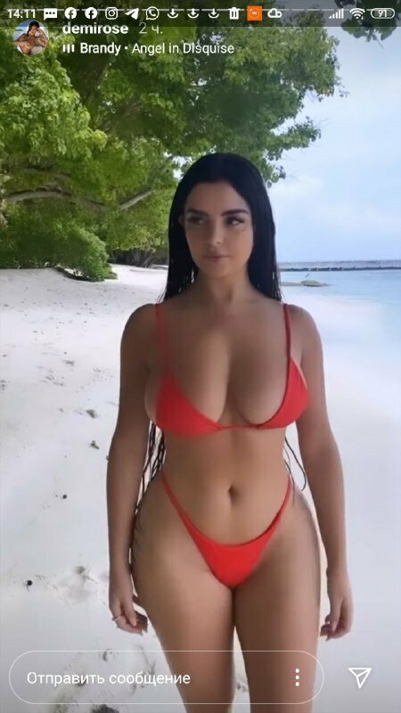 Модель прославилась, благодаря шикарной фигуре в форме песочных часов. Сейчас Деми находится на островах и регулярно демонстрирует на себе эффектные наряды.