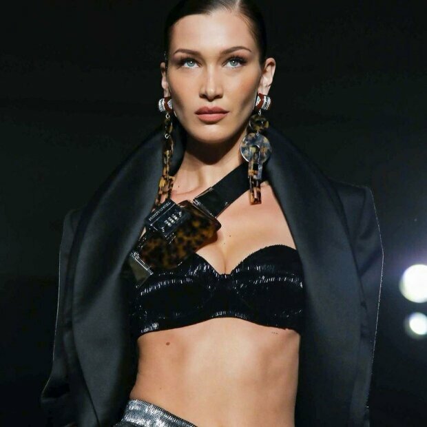 Напомним, что Белла Хадид показала, как красуется в знаменитом Музее естественной истории в США. Белла вышла на подиум в лаковом бра, широких штанах, и накидке на плечи. Волосы стройной красавицы-артистки были собраны, на лице — минимум макияжа, образ дополнили массивные.