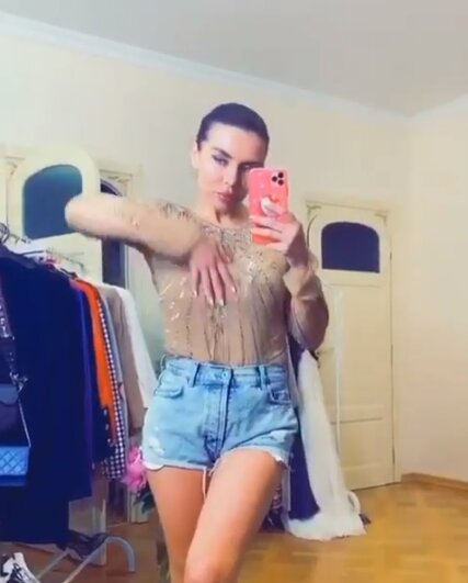 Красотка начала с мини-платья телесного цвета, которое натянула на пышную фигуру. Седокова напрочь забыла о нижнем белье, посветив сочными "дыньками", не стесненными лифчиком.