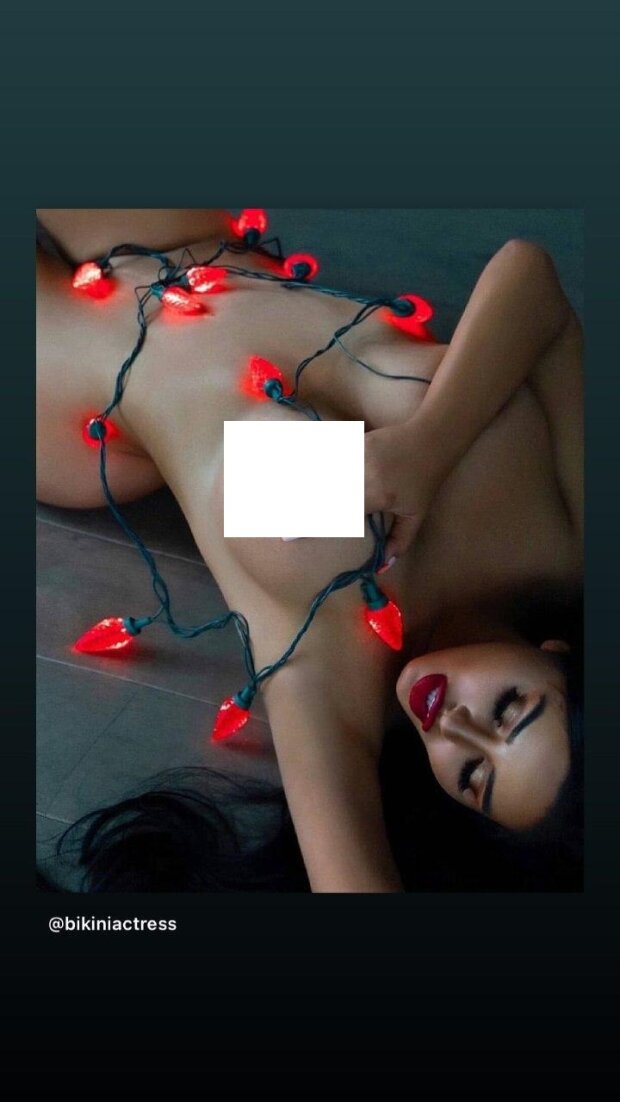 На другой фотографии Рэтчфорд позирует уже лежа без белья, «укрывшись» при этом гирляндой. Дополняли образ знаменитости эффектный макияж и прическа, а пикантные места она прикрыла рукой.
