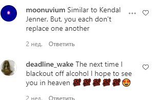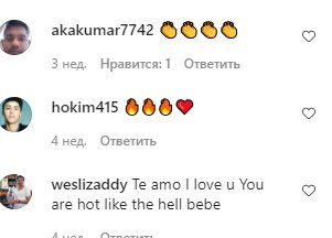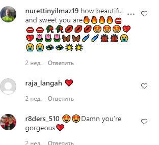 «Ты выглядишь потрясающе, детка», «В бикини вы выглядите слишком роскошно», «Боже, это идеально😍🔥🔥», «Почему это так провокационно😍», «Похоже на Кендал Дженнер, даже круче. Но каждый из вас не заменяет друг друга», «В следующий раз, когда я откажусь от алкоголя, я надеюсь увидеть тебя на небесах 💯💯💯💯💯😍», «Мое любимое фото ja ja💖», «способ пропаганды расстройств пищевого поведения …», "Черт возьми, ты великолепна", «Королева Близнецов 🔥», — написали фанаты.