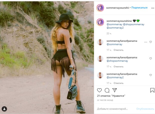 А вот славу девушке принесла именно ее страница в Инстаграм, ведь отчеты из тренировок немало обсуждались в социальной сети. Благодаря этому у Рей более 25, 4 миллионов поклонников, а каждое фото оказывается в центре бурных обсуждений. Фанаты массово нахваливают Соммер. На одной из фото видно почему – девушка обладает хорошим чувством стиля и знает, как подчеркнуть ягодицы в выгодном ракурсе.