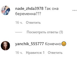 «Конечно же выходим, на работу уже давно!))», «Так она беременна???», «Конечно😊», «Красотка 😍», «А почему без кольца и ничего не слышно о муже? Я что-то пропустила?», «Чудова🌼», «Классно супер!!!❤️❤️❤️💥💥💥», «Мы и не сидели дома , придерживались конечно всех необходимых норм 😷 🧤».