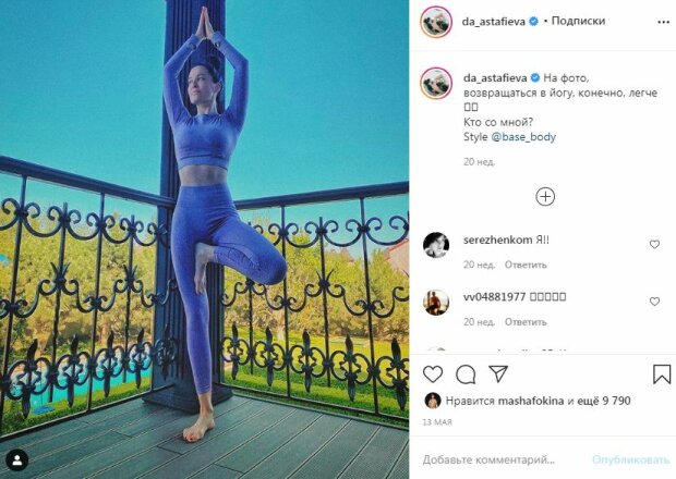 Модель и певица Даша Астафьева нередко хвастается фигурой в стиле "ню". Поэтому красотке не составляет труда, появиться в облегающей одежде, в том числе в спортивном костюме, который отлично подчеркивает ее аппетитные формы.