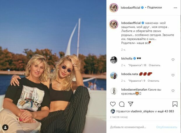 Ранее сообщалось, что Светлана Лобода позировала со своей мамой, Натальей Васильевной, на берегу водоема. На звезде – черные брюки в полоску и топик, обнажающий живот певицы.