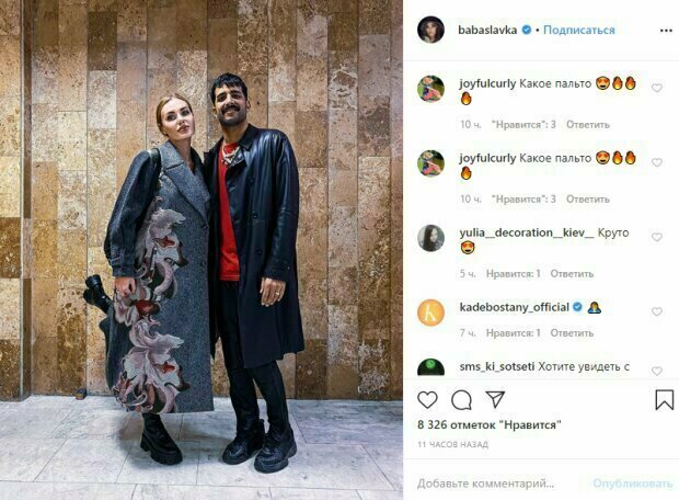 До этого же артистка решила представить на стильном снимке себя в новом образе, стоя рядом с солистом известной группы. Сама Каминская выглядела весьма стильно и скромно – длинное пальто в пол серого оттенка с массивной россыпью вышитых цветов. Дополнила новый наряд артистка массивными кожаными сапогами, легким макияжем и аккуратно завязанными волосами.