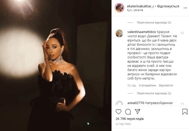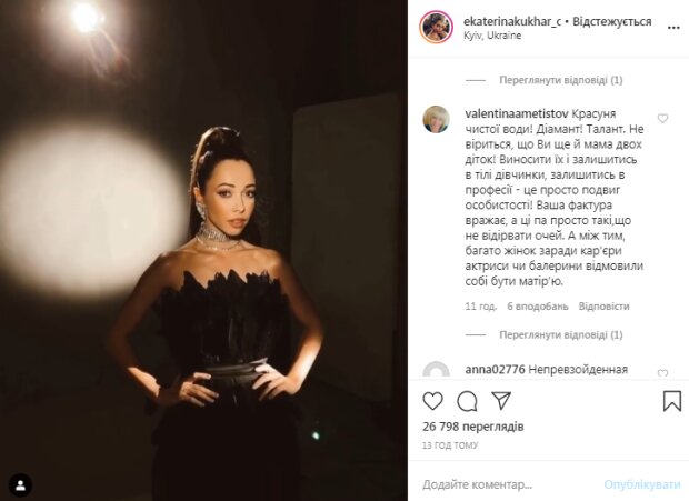 Как пишет Politeka.net, свежее видео звезда опубликовала на своей странице в Инстаграм. На коротком ролике украинская балерина позировала в элегантных позах, демонстрируя свое идеальное тело и внешность. Красотка была одета в очень необычное черное платье из перьев. На шее у нее красовалось роскошное ожерелье. Волосы женщина собрала в хвост.