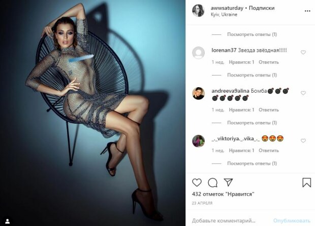 На первом фото можно увидеть Анастасию Субботу, "Мисс Украина Вселенная 2019", в прозрачном платье из сеточки. Девушка ничего не прикрыла и можно увидеть самые сочные места звезды. Модель сидела на дизайнерском стуле и выгнула спинку для более пикантной позы. Об этомм пишет Politeka.net со ссылкой на страничку знаменитости.