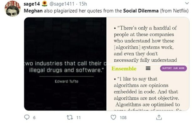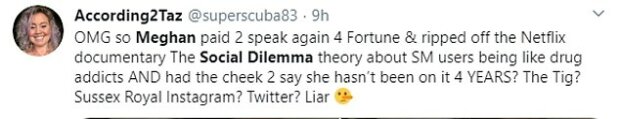 Пользователи обратили внимание на то, что речь Меган Маркл похожа на идею документального фильма «Социальная дилемма», который был снят Netflix.
