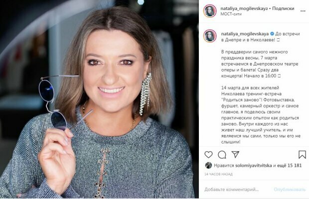 Сама Могилевская распустила волосы, а на ее лице был едва заметный макияж.