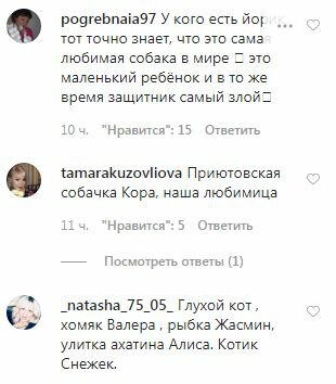 "У кого есть йорик, тот точно знает, что это самая любимая собака в мире 😘 это маленький ребёнок и в то же время защитник самый злой😊", "Приютовская собачка Кора, наша любимица", "Глухой кот , хомяк Валера , рыбка Жасмин, улитка ахатина Алиса. Котик Снежек", "Собакей-Келвин ,кот-Нафаня ,кошка-Анфиса,кошка-Ася ,кошка-Соня 😻", "Очень красивая и настоящая фотография!!", "Йорик! Изабель) и окрас такой же", "Черепаха, которой 18 лет, собака 💗", "А у нас рыжая, прерыжая собачка", "А Вы с ним похожи🙂", "Ни детей, ни семьи, остался только Масик", "Метиска Ася)))))) самый любимый член семьи 🐶🐕❤️", "Вот мой гангстер 😍", "У меня тоже йорик Тимоша😍🐶🥰", "Такое же чудо, йорк Дарси❤️", — написали пользователи сети.