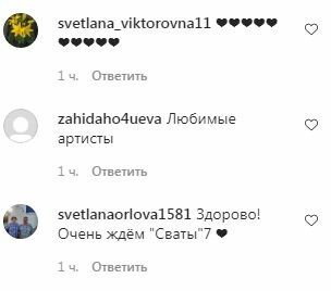 "Любимые артисты", "Здорово! Очень ждём "Сваты"7 ❤️", — написали пользователи сети.