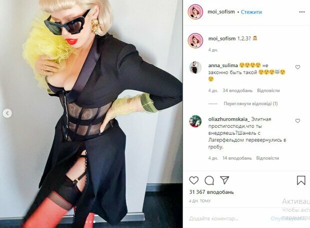 Уточним, что на кадрах Плакидюк в образе блондинки с внушительными объемами поет на камеру, пока мужчина везет ее на место съемки. Другие поклонники судьи СТМПУ не могли восхититься нарядом кумира – кадры были выброшены в Сторис.