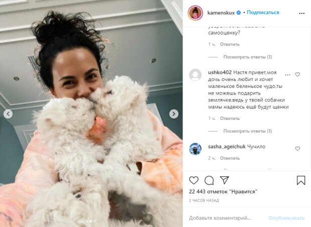 «А продавать будете?; Вы такая уверенная в себе! Я восхищаюсь вами!; Пушистое счастье💜; Шлядкие 😘😘😘; 😍😍😍❤️❤️❤️Милотааа♥️♥️; Вторая фотка 😍; Порода собань болонка ? интересно, раньше как-то не обращала внимание на эту породу )); А родить ребенка не, думала года то уже подходят, или боишься фигуру испортить?; Как мило😻❤️; Какие они шшладкиеее😍😍😍; Какие они классные🤗😻; Пушистые комочки!!!; Милашки😍; Мечтаю о такое собачке😍😍😍; Как к лицу Насте, с этими собачками. 😍; Брюнетка тоже очень милая❤💜💚».