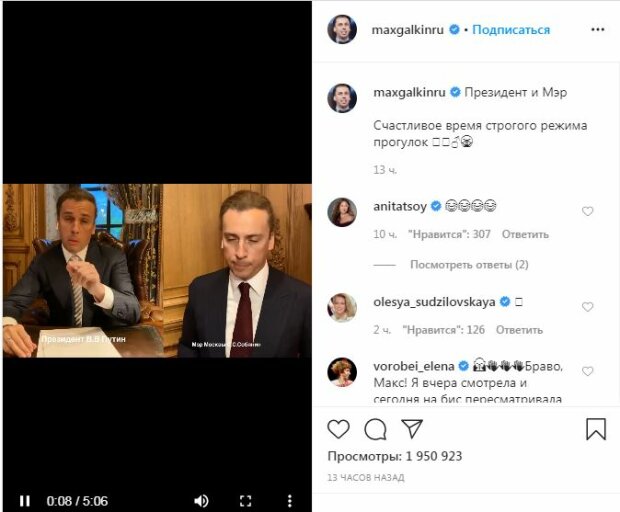 В частности, известный российский комик Максим Галкин решил спародировать совещание президента РФ Владимира Путина и мэра Москвы Сергея Собянина.