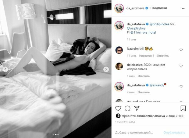 На этот раз Астафьева показала фото, на которых запечатлена с обнаженной грудью и "пятой точкой".