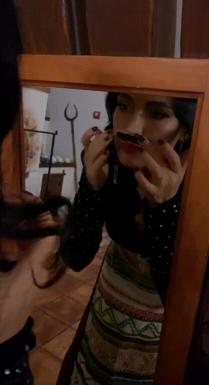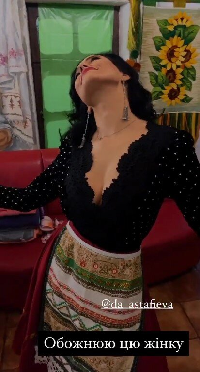 На опубликованных кадрах видно Астафьеву в наряде с декольте, которая танцует под пение Никитюк. В какой-то момент телеведущая предлагает подруге «дополнить образ», и передает Астафьевой накладные усы.