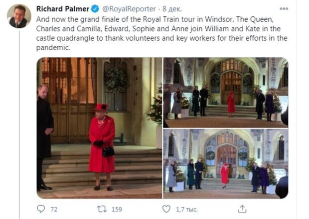 Помимо самого монарха, принцессы Анны и принца Чарльза с женой Камиллой, Уильяма и Кейт встретили младший сын Елизаветы II принц Эдвард и его супруга Софи.
