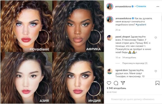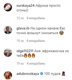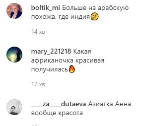 «Африка просто огонь))», «Аня, африканочка из тебя🔥🔥🔥», «Конечно возьмут🔥🔥🔥🔥», «Ты хочешь казаться абсолютно для всех самой лучшей ОТЛИЧНИЦЕЙ, я самая-самая, так не бывает, ты обычная, не надо из себя строить – это так бросается в глаза, просто стань настоящей, стань собой», «Индия огонь🔥», «Возьмут Анюта ты красотка», «Больше на арабскую похожа, где индия🤔», «Какая африканочка красивая получилась🔥», «Азиатка Анна вообще красота», – делятся мнениями в комментариях пользователи.