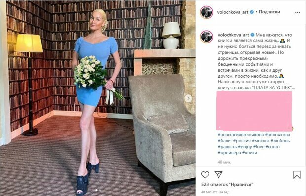 «Мне кажется, что книгой является сама жизнь..🙏 И не нужно бояться переворачивать страницы, открывая новые.. Но дорожить прекрасными бесценными событиями и встречами в жизни, как и друг другом, просто необходимо.🙏 Написанную мною уже вторую книгу я назвала "ПЛАТА ЗА УСПЕХ"…», – подписала она фото.