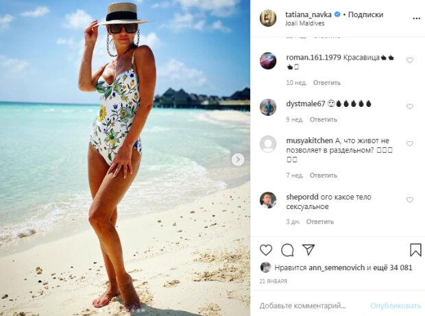 Олимпийская чемпионка, фигуристка Татьяна Навка несмотря на свой возраст выглядит просто потрясающе. В 45 лет звезда фигурного катания может себе позволить яркие концертные платья и соблазнительные купальники.