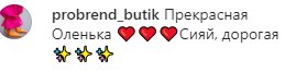 "Прекрасная Оленька ❤️❤️❤️Сияй, дорогая ✨✨✨"