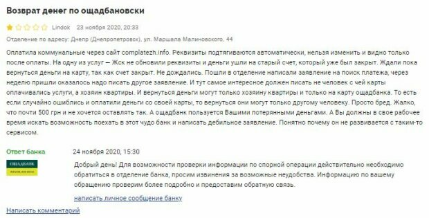 "И тут самое интересное: должен писать не человек, с чей карты оплачивались услуги, а хозяин квартиры. И вернуться деньги могут только хозяину квартиры и только на карту ощадбанка", — говорится в жалобе.