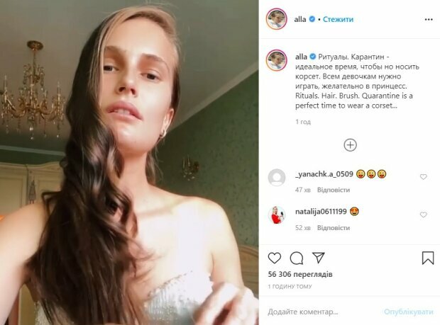 Например, ведущая популярного шоу «Топ-модель по-украински» Алла Костромичева отметила, что карантин – это время носить корсеты. На своей странице в Instagram она опубликовала видео, на котором в белом корсете, украшенном бисером, расчесывает свои роскошные локоны. При этом на лице модели – ни грамма макияжа, оно сверкает естественной красотой.