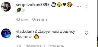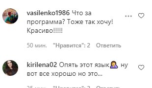 «Восхищаюсь твоей красотой», «Что за программа? Тоже так хочу! Красиво!!!!!», «Опять этот язык🤦♀️ ну вот все хорошо но это…», «Как? Я тоже так хочу», «so bracing 🥶😂», «Настя, спасибо Вам за позитив!!!», «Интересно получилось😍», «Детский сад».