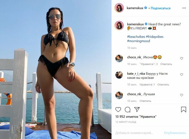 Также Politeka писала, что Каменских взбудоражила фигурой в слишком тесном купальнике.